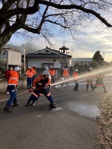 今回の火災防ぎょ訓練は、文化財防火デーに伴い実施されたもので、防火水槽、地上式消火栓から水利を確保し、設定された火点に向かって迅速に中継、放水が行われていました。新年となり、全国で火災が相次ぐ中、中島村消防団は一丸となり火災の予防、消火体制の確立に尽力していました。
