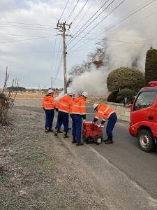 令和7年1月19日(日)に中島村大字滑津字代畑地内で、中島村消防団により火災防ぎょ訓練が実施されました。