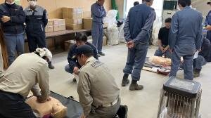 工場長をはじめとした職員全員が真剣に取り組んでいる姿がみられ、救急法についての知識・技術を深める場となりました。