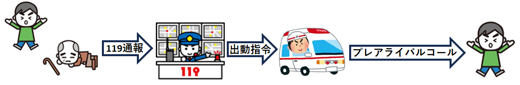 プレアライバルコールとは、119番通報を受け出動中の救急隊が現場に到着するまでの間に、状況に応じて救急隊から通報者の方に折り返しの電話(プレアライバルコール)をすることです。