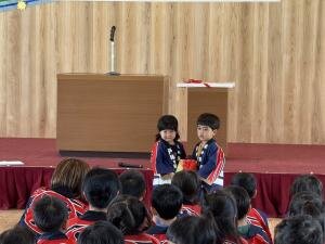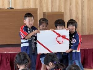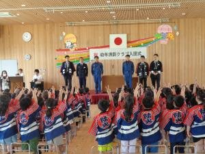 令和7年5月16日、はなわこども園にて、幼年消防クラブの入団式を合同で実施しました!