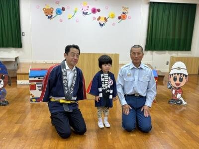 令和7年6月3日、笹原幼稚園で幼年消防団入団式を実施しました!
