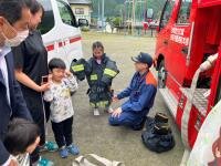 入団式のあとには、お楽しみの消防車と救急車の見学会も実施!