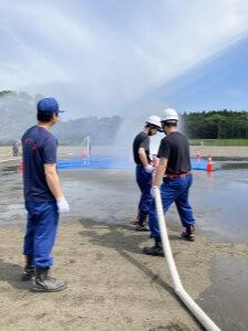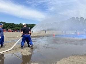 ポンプ車に加え、小型可搬ポンプについても取り扱いを行い、有事の際に迅速に活動できるよう訓練に励まれていました。