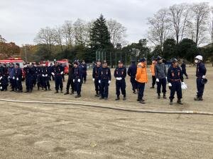 消防団員の中には機器を初めて取扱う方や、伝令を初めて実施する方もみられ、現場活動時に必要な技術や知識を学ぶ機会となりました。消防署で訓練の展示を行い操法のイメージを掴み、時間を有効に活用して団員全員が活動について理解を深めました。