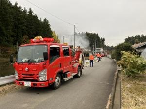 令和7年11月9日(日)に中島村大字二子塚地内で中島村消防団による火災防ぎょ訓練が実施されました!